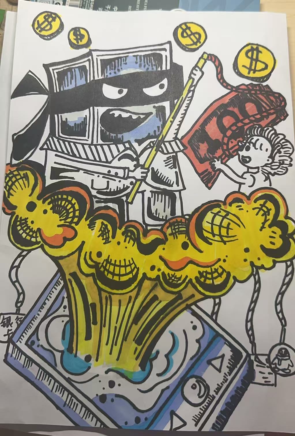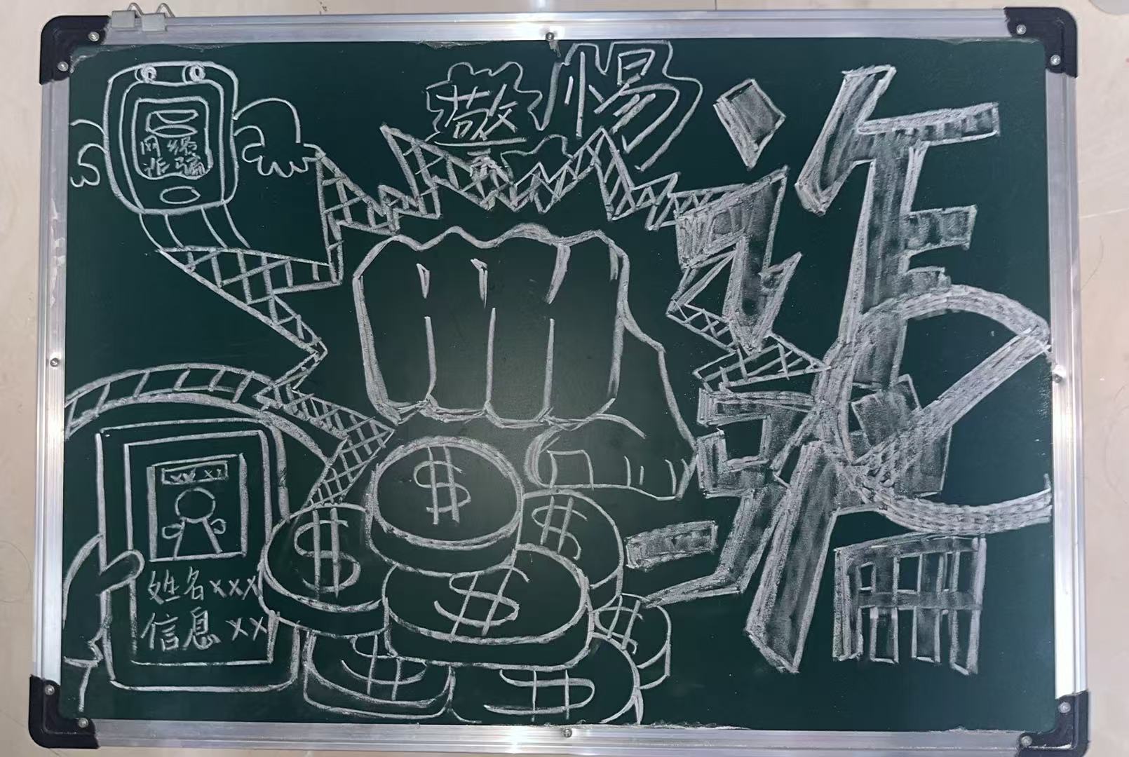 根据调查结果,五班宣传组迅速响应,制作主题黑板报与手抄报,通过图文结合的形式解析诈骗套路,强化警示效果。