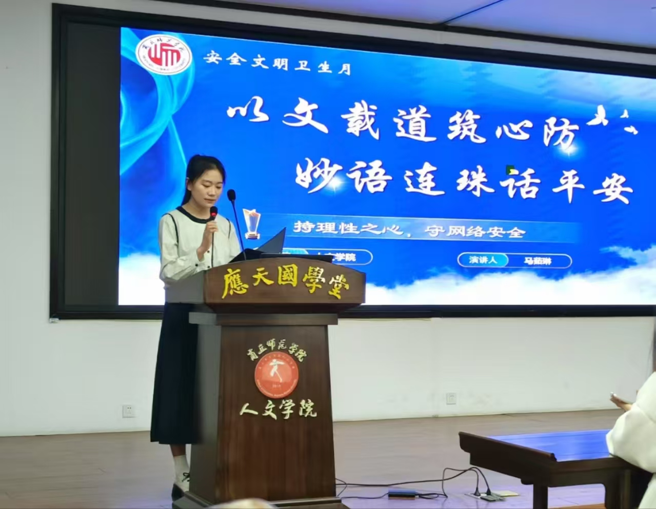 安全是校园的基石,平安是青春的底色。活动中,来自汉语言文学专业的同学们以文字为盾、以语言为剑,用演讲传递安全理念,用创意诠释平安真谛。比赛结束后,各评委对选手们进行打分,主持人杜佳怡简要总结本次比赛,并表达对未来的展望,大赛圆满完成。