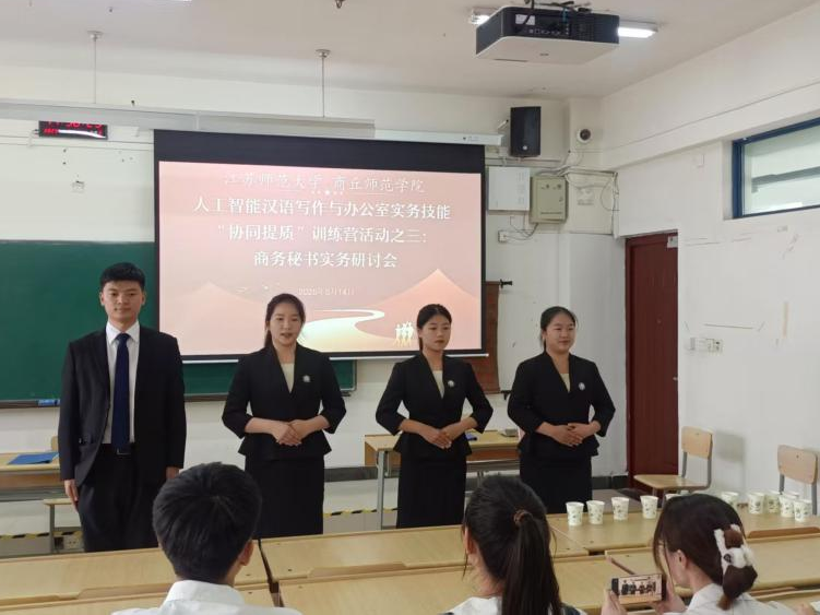 2025年5月14日,受江苏师范大学文学院诚挚邀请,国产欧美一区二区秘书学专业师生到江苏师范大学进行专业交流活动。在张松林、张富林老师带领下,2022级秘书学王秀怡、王启苑、尚雪儿、田帅帅四位同学与江苏师范大学文学院秘书专业同学就“慧文杯”第十五届全国商务秘书职业技能大赛核心议题、人工智能汉语写作与办公室实务技能“协同提质”等进行了深入交流。张松林、张富林老师结合往届参赛经验,向江苏师范大学同仁系统分享了大赛的实战技巧。双方教师针对学生在“情景展示”中的模拟案例表现进行精准点评,就人工智能技术在公文写作、会务组织等场景中的创新应用展开前瞻性探讨。