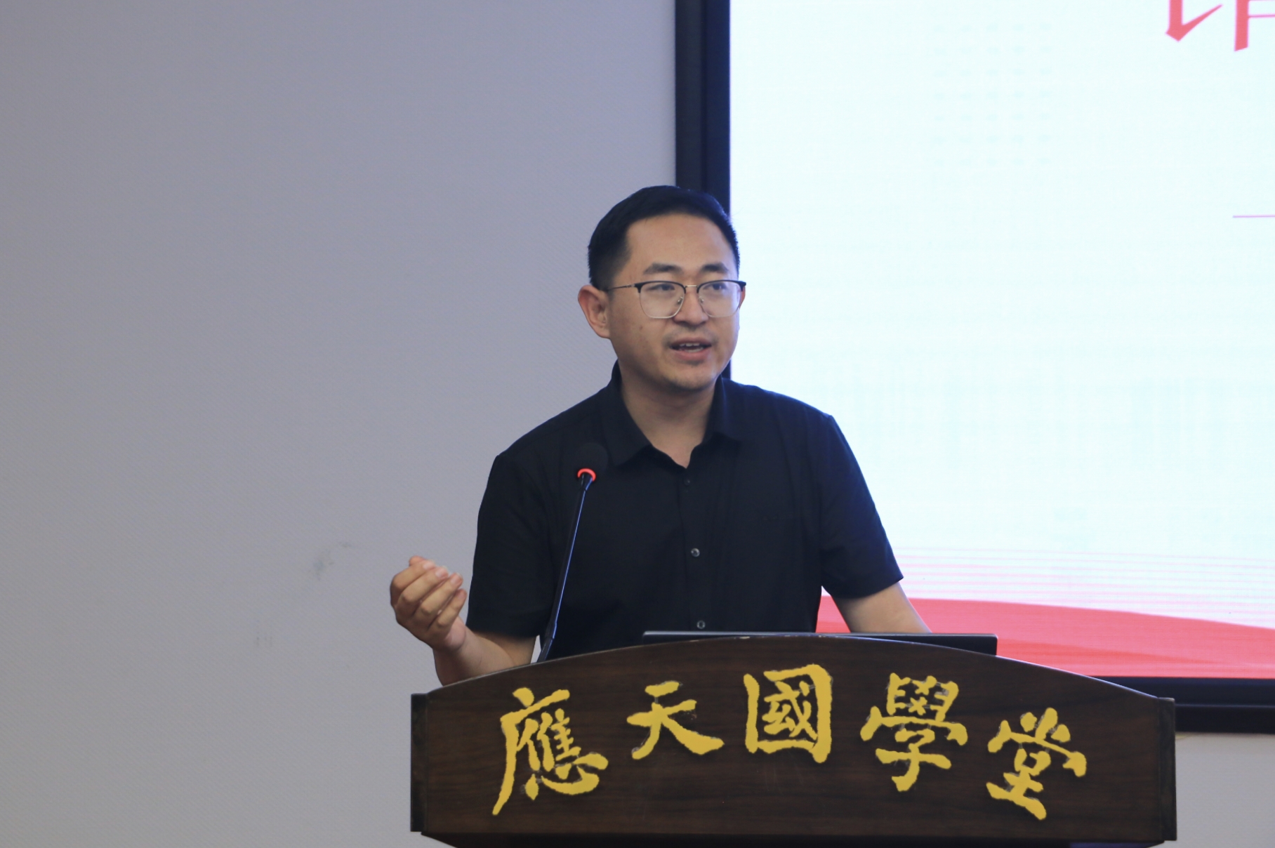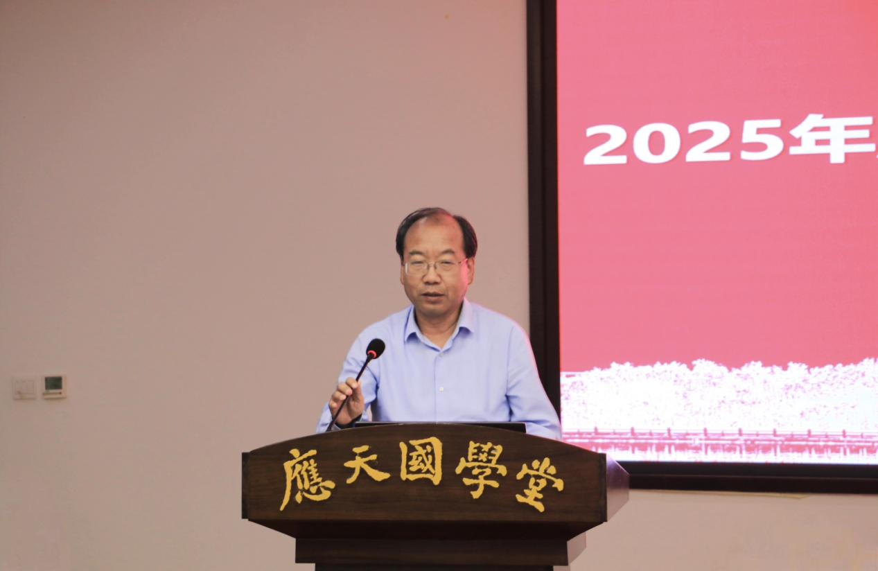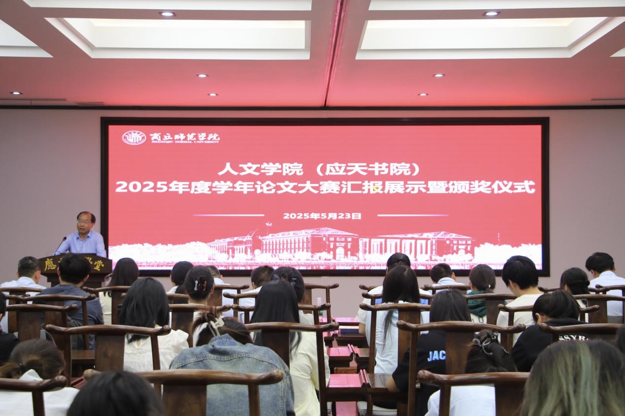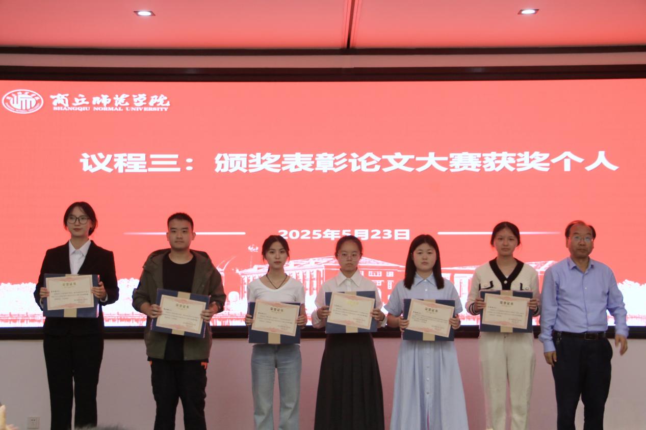 五月榴花照眼明,学术薪火正相传。为深化科研育人成效,提高学术水平、弘扬学术精神,5月23日下午,国产欧美一区二区在汉梁楼国学堂隆重举行2025年度学年论文大赛汇报展示暨颁奖仪式。商丘师范学院副校长郭文佳、国产欧美一区二区班子成员,各系主任、教师代表、2022级和2023级学生参会。副院长李卫军主持了会议。