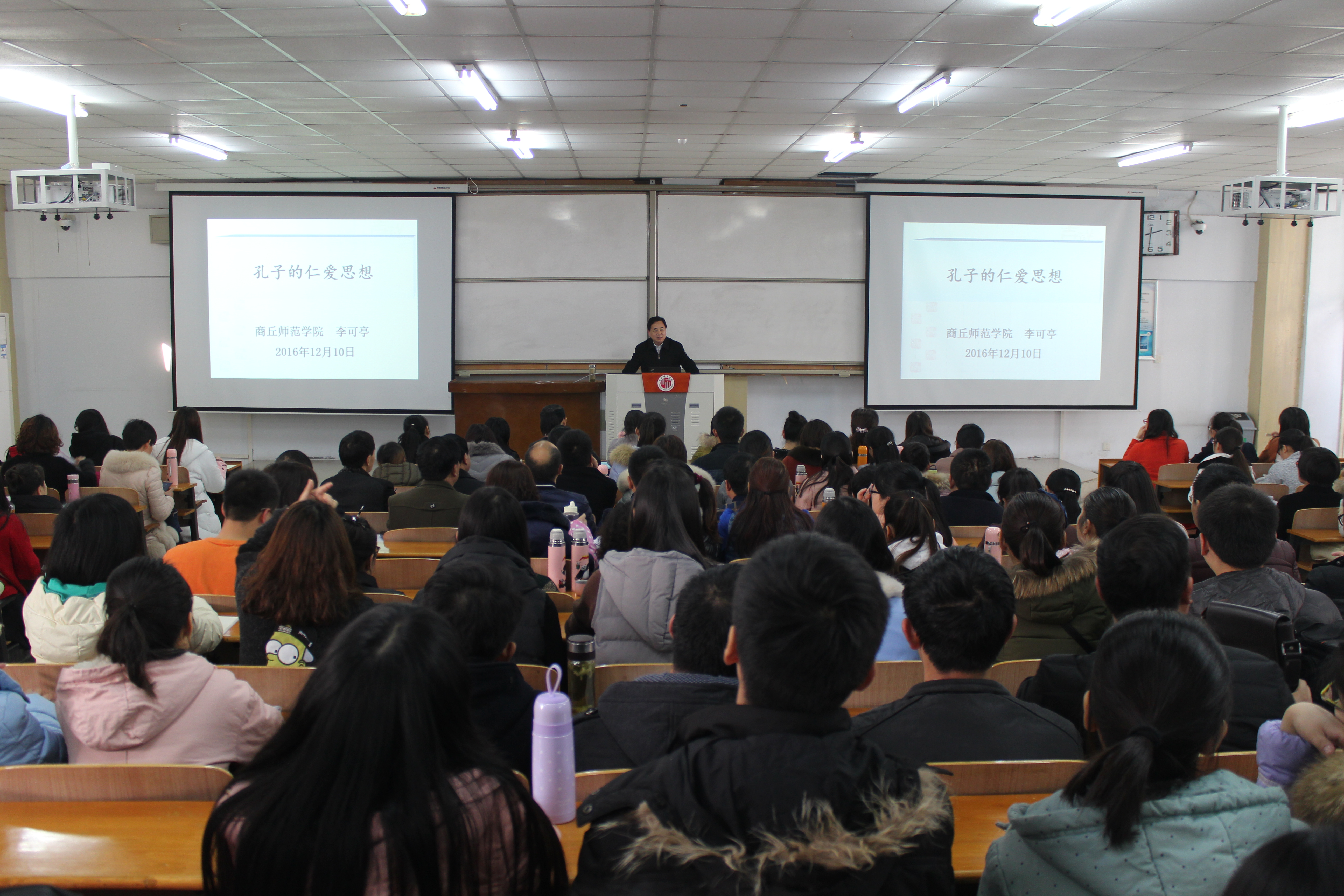 为了提高同学们的人文素养,培养同学们的仁爱理念。12月10日下午,国产欧美一区二区李可亭教授在我校平原路校区一号教学楼307教室举办了“孔子的仁爱思想”的精品文化讲座。颇具文化内涵的讲座课题,吸引了众多老师和同学前来聆听。