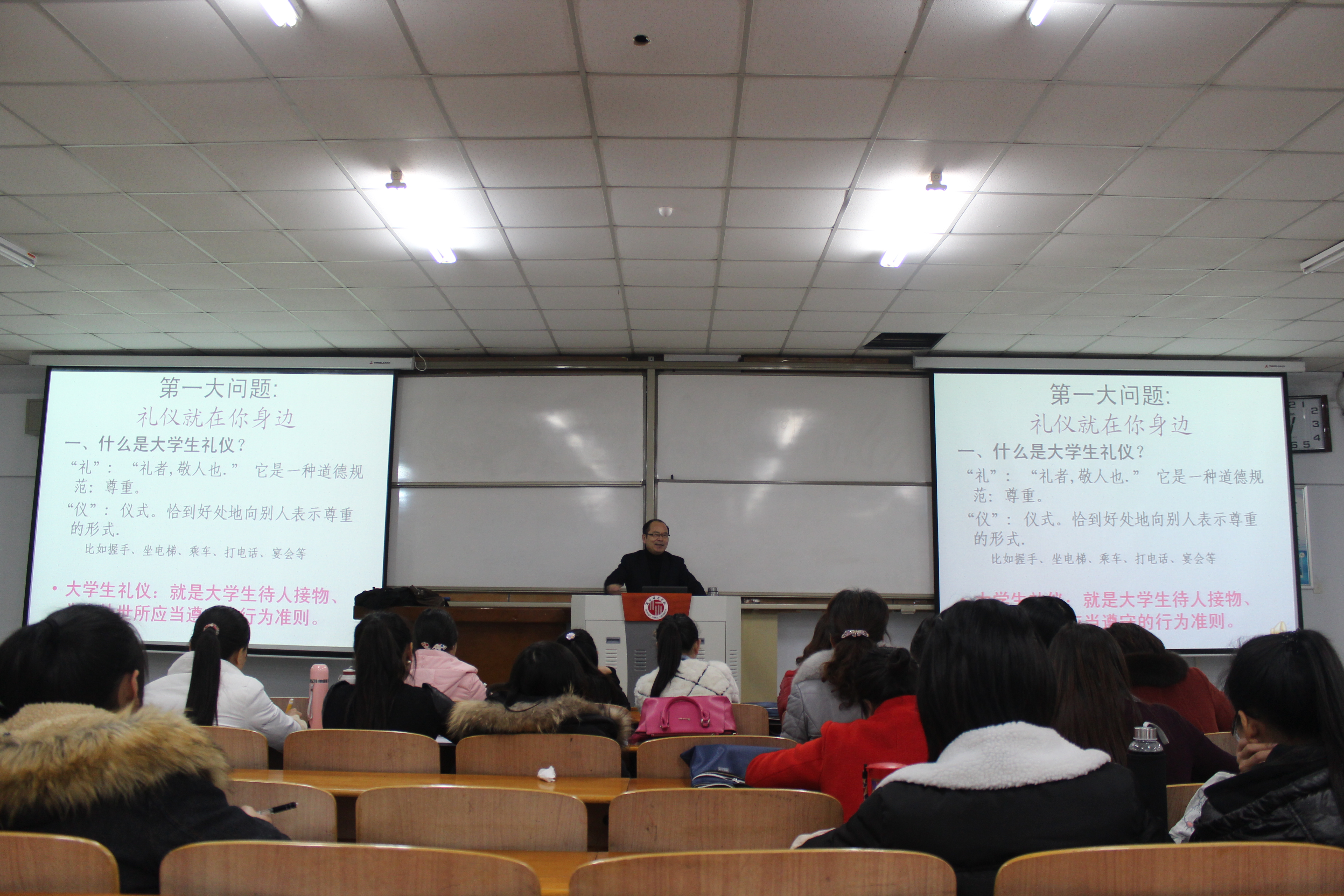 行万里修养路,做百年文明人。为提高同学们的礼仪修养,12月2日晚,国产欧美一区二区刘同般教授在我校平原路校区综合楼307教室举办“展现你的礼仪,折射你的修养—大学生礼仪修养纵横谈”的讲座。