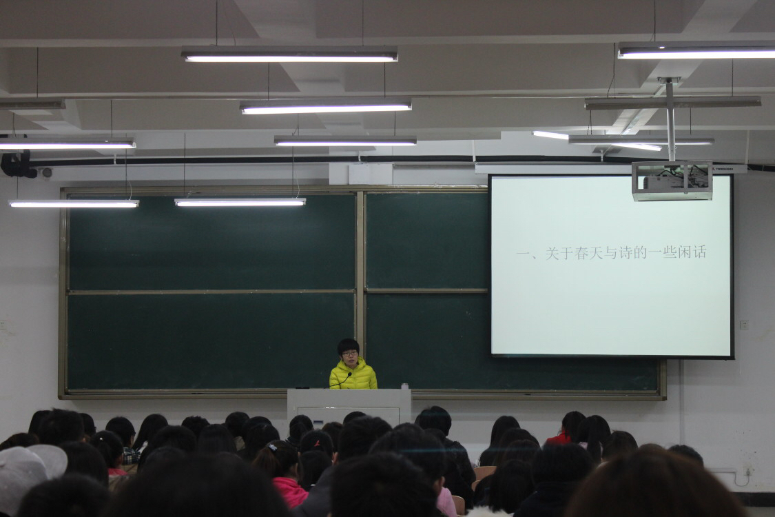3月5日晚,国产欧美一区二区常丽洁博士在我校平原路校区实验组团楼125教室开展题为“春天的诗行”的主题讲座。讲座课题新颖,吸引众多老师和学生前来倾听。