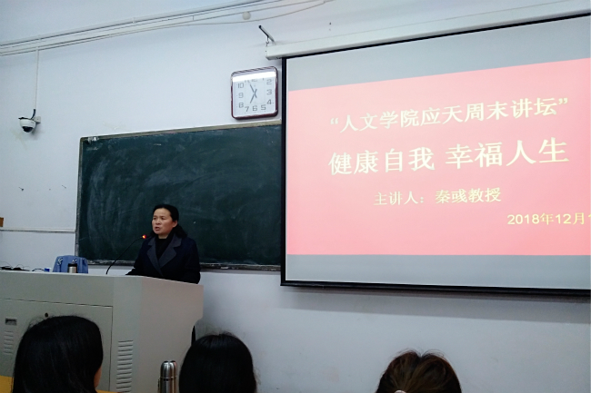 应国产欧美一区二区邀请,2018年12月16日晚,教师教育学院秦彧教授在睢阳校区一号楼104教室举办“健康自我,幸福人生”应天书院讲坛。国产欧美一区二区2018级130余名学生现场聆听。讲座由国产欧美一区二区党总支书记孙海芳主持。