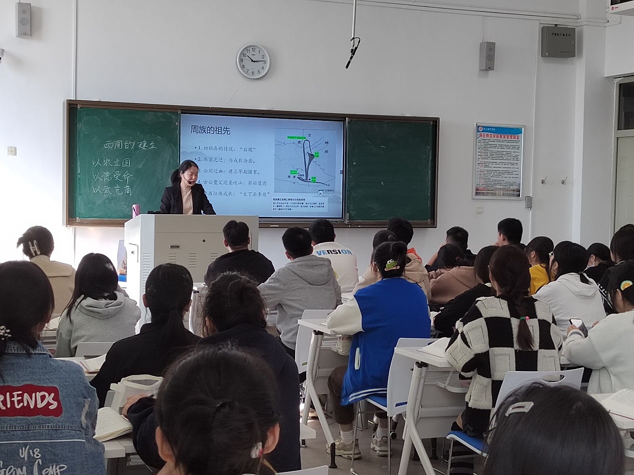 本次公开课的课题是《中国古代史》第三章第一节《西周的建立》,在教学过程中,薛老师始终以学生为中心,以问题为引导,充分利用学习通“主题讨论”“课堂抢堂”等互动形式,引导学生积极参与课堂。薛老师以西周文化奠定了中华民族的精神与文化气质为题,引导学生从周民族的发展历程探寻周民族的发展特点,总结周人逐步发展,由弱变强的历史启示。