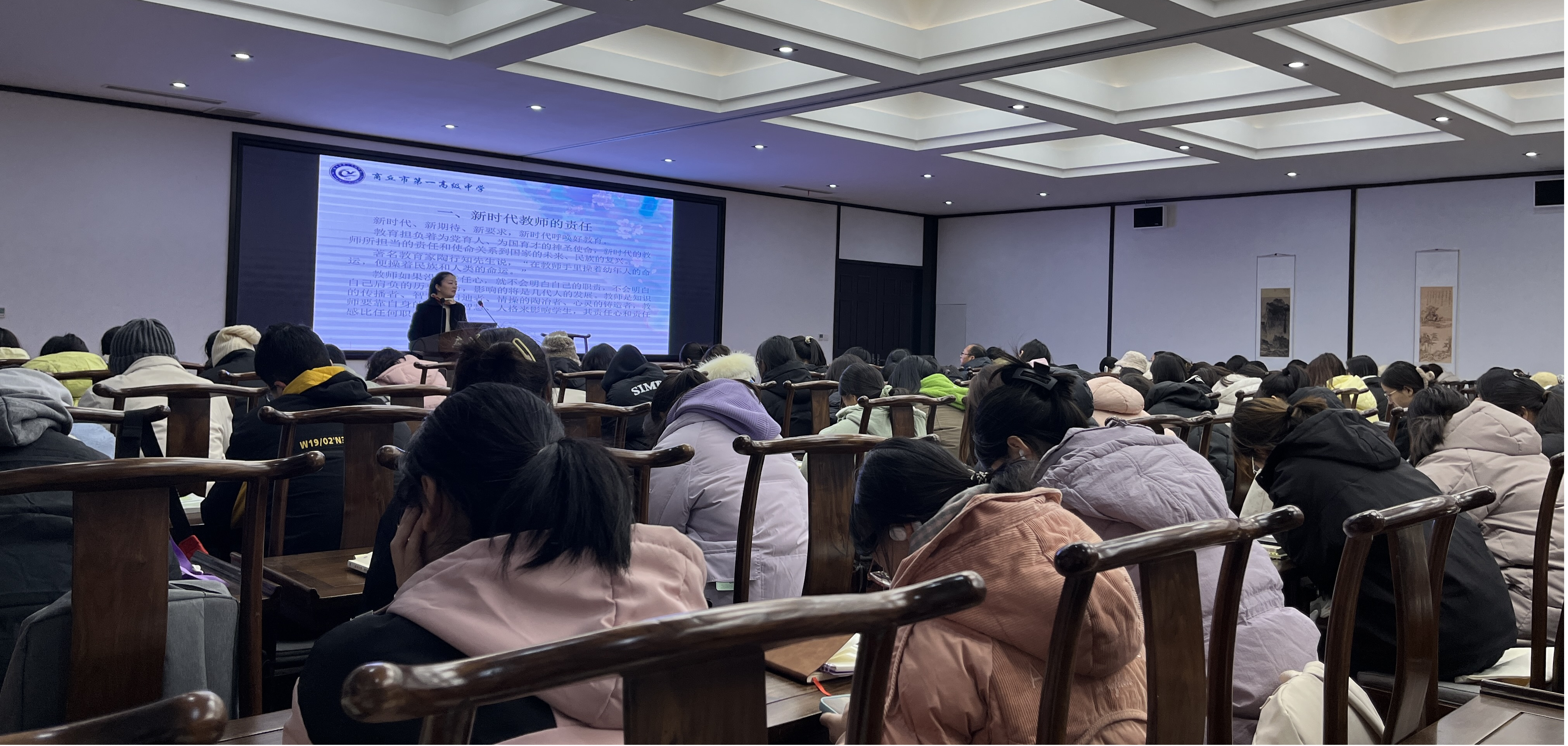 为了高质量推进国产欧美一区二区本科生培养,提升师范生专业素养,12月21日晚,国产欧美一区二区(应天书院)邀请著名校友、“中原名师”竟霞老师做客“应天书院教育讲坛”,主讲“新时代背景下的教师素养与专业成长”。讲座由李卫军副院长主持,部分教师及2023级全体同学参加了活动。