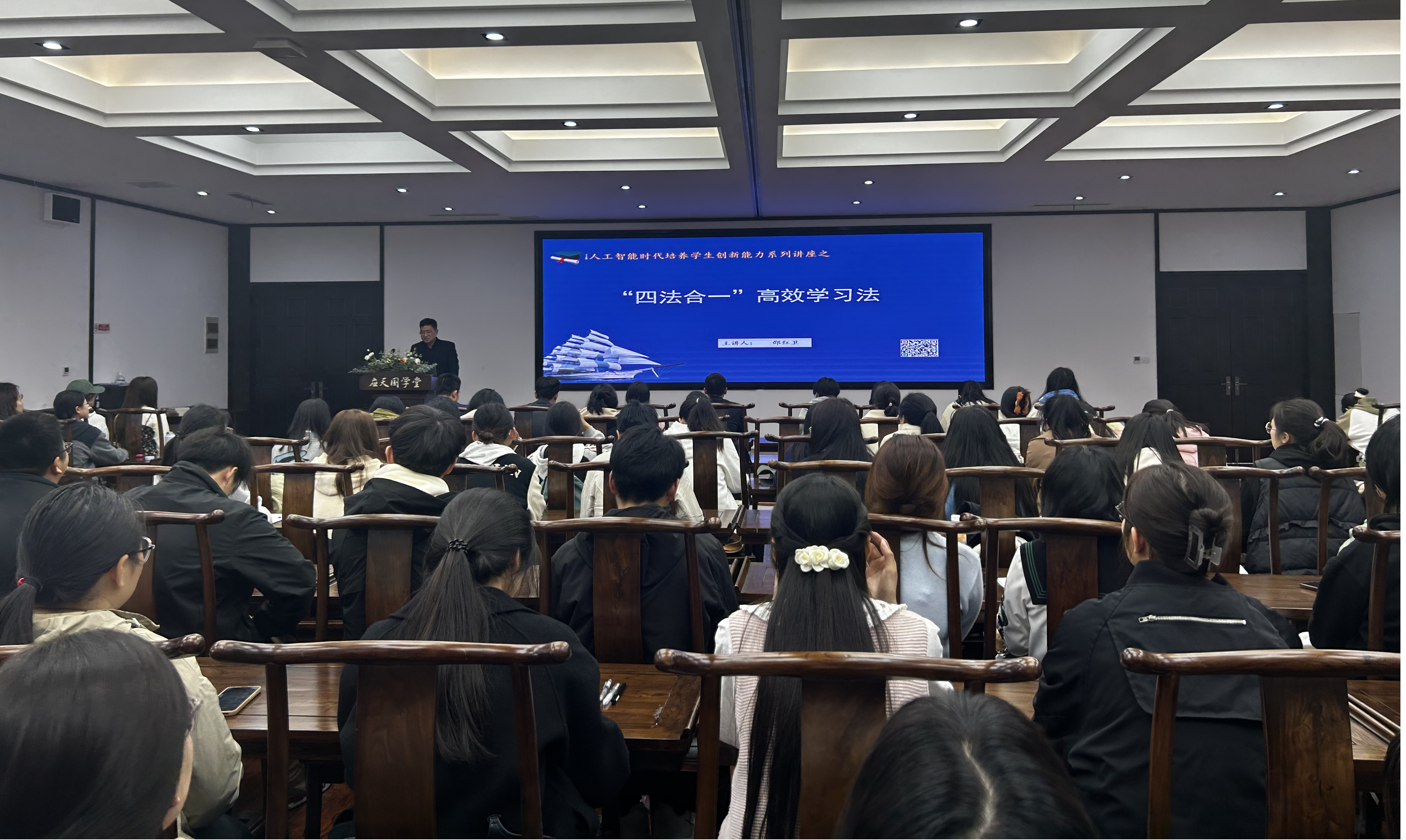 讲座中,邵红卫副校长详细阐述了“四法合一”学习法的核心理念与实践方法。他指出,这一学习法旨在将传统学习方法与现代学习技巧,尤其是人工智能相结合,通过目标设定、时间管理、知识整合和实践应用四个方面的有机结合,帮助学子们提高学习效率,实现全面发展。
